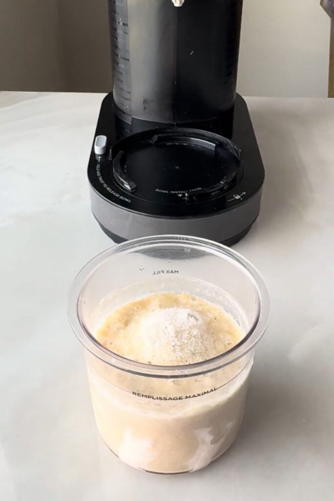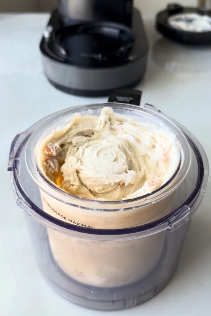 - Next, transfer the mixture into the Ninja Creami pint and place the lid on.